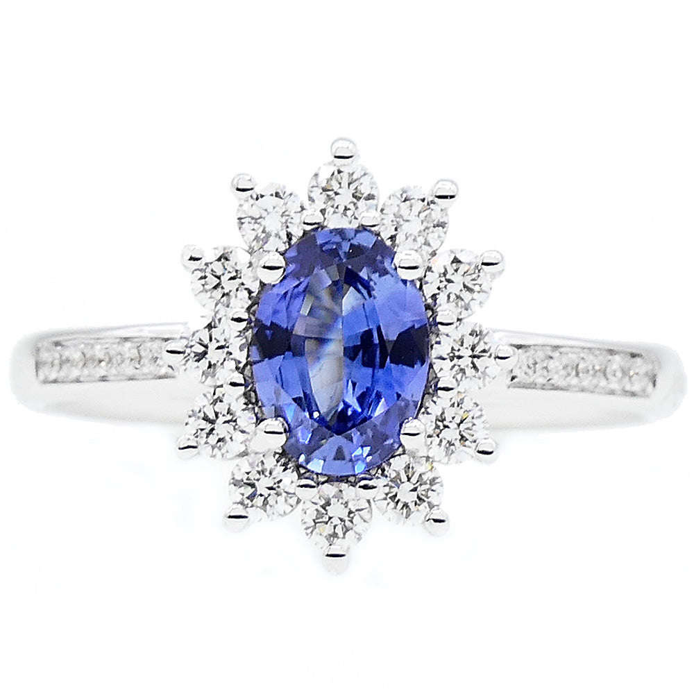 Anello Rosetta Oro Bianco con Diamanti e Zaffiro Recarlo